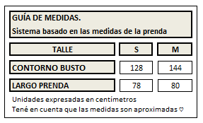 Cada prenda es única y puede tener variaciones en sus medidas según su diseño. Las medidas indicadas en la descripción son aproximadas y se tomaron directamente de la prenda, en centímetros. La etiqueta textil y/o avíos de logo de marca, cordones ajustables y/o botones de la prenda, puede variar según partida de fábrica.