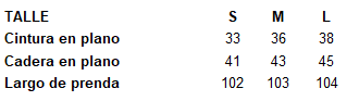 Cada prenda es única y puede tener variaciones en sus medidas según su diseño. Las medidas indicadas en la descripción son aproximadas y se tomaron directamente de la prenda, en centímetros. La etiqueta textil y/o avíos de logo de marca, cordones ajustables y/o botones de la prenda, puede variar según partida de fábrica.